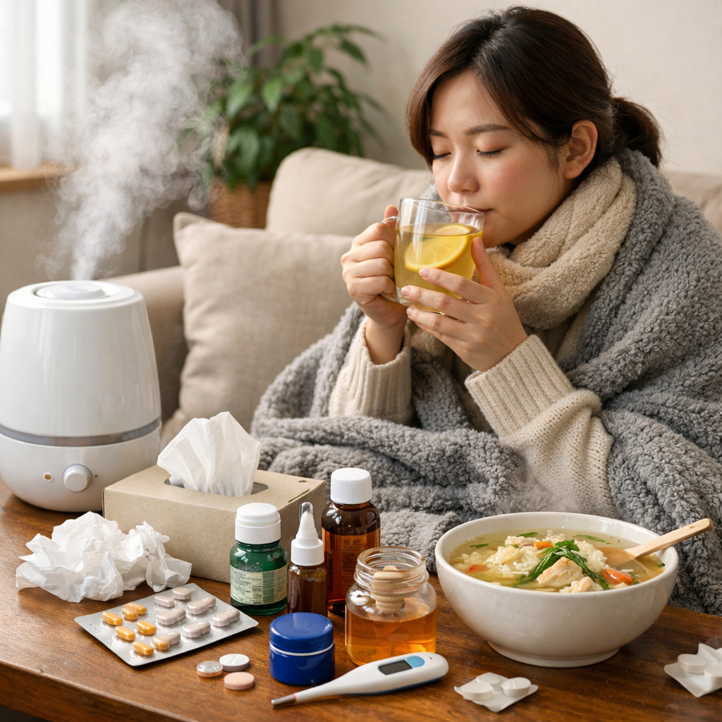 ④ 방 안 공기를 확인하세요. 너무 건조하다면 젖은 수건을 걸어두고, 너무 추우면 얇은 이불을 하나 더 덮어요. 공기 온도와 습도는 감기 회복에 진짜 큰 영향을 줘요. 작은 환경 조정이 큰 차이를 만들어요.