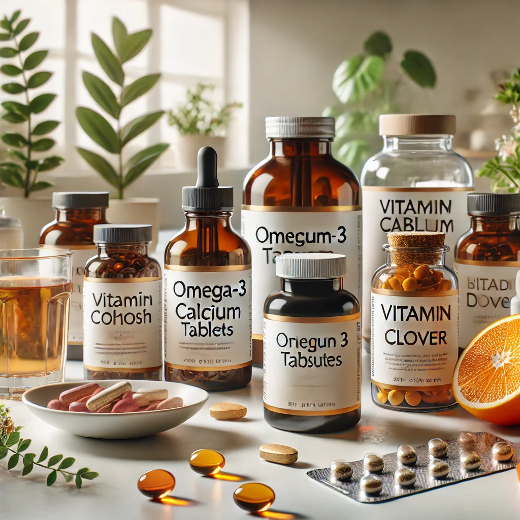 에스트로겐 감소로 인해 뼈가 약해지고 근육량이 줄기 때문에 단백질, 칼슘, 비타민D, 마그네슘은 필수예요. 여기에 오메가-3, 비타민B군, 항산화 영양소까지 더해지면 갱년기 증상 완화에 큰 도움이 돼요.